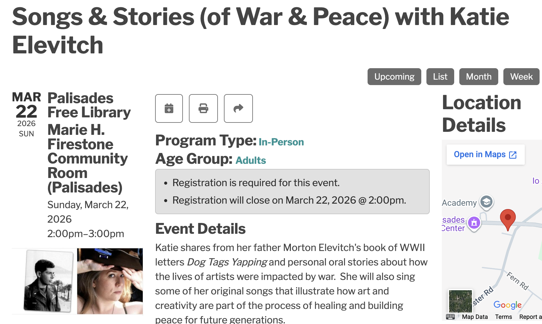 palisades free library 🌟 3/22/26 2-3pm 🌟