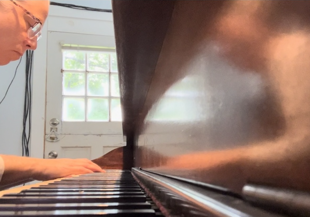 Katie composing new work for her multi-arts exhibition at Rockland Center for the Arts, 2023.